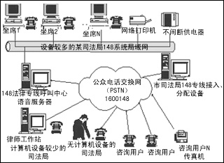 此方案使用后,以市為中心,可把周邊的各個(gè)縣、各個(gè)區(qū)聯(lián)成一個(gè)統(tǒng)一的148法律服務(wù)整體,各個(gè)縣、各個(gè)區(qū)的咨詢(xún)用戶(hù)只需要知道一個(gè)統(tǒng)一的148法律服務(wù)電話(huà)號(hào)碼,就可與最近的148法律服務(wù)臺(tái)接通進(jìn)行法律咨詢(xún)。