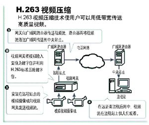 由于視頻壓縮技術(shù)特別是H.263標(biāo)準(zhǔn)提供了一種取代增加帶寬的高性價(jià)比途徑,因此利用IP傳輸視頻時,用戶不必將網(wǎng)絡(luò)升級到千兆以太網(wǎng)。在視頻壓縮領(lǐng)域中有兩類技術(shù):多家生產(chǎn)商開發(fā)的專有壓縮算法;H.263和包括Motion JPEG在內(nèi)的MPEG系列等基于標(biāo)準(zhǔn)的技術(shù)。