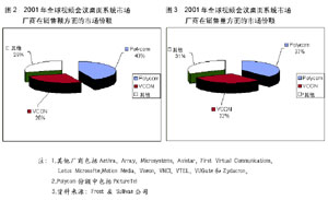 國(guó)際視頻會(huì)議廠商瞄準(zhǔn)了中國(guó)市場(chǎng),而國(guó)內(nèi)也不乏本土視頻產(chǎn)品提供商,如華為、中興、清華同方視訊、新太、維訊新科、瑞福特等。雖然有本土優(yōu)勢(shì),但他們的實(shí)力和影響力還遠(yuǎn)遠(yuǎn)不夠。在國(guó)內(nèi)市場(chǎng)中,占有絕對(duì)份額的IP視頻會(huì)議系統(tǒng)還是國(guó)外產(chǎn)品。2001年,國(guó)外廠商從國(guó)內(nèi)市場(chǎng)拿走了近10億元人民幣。