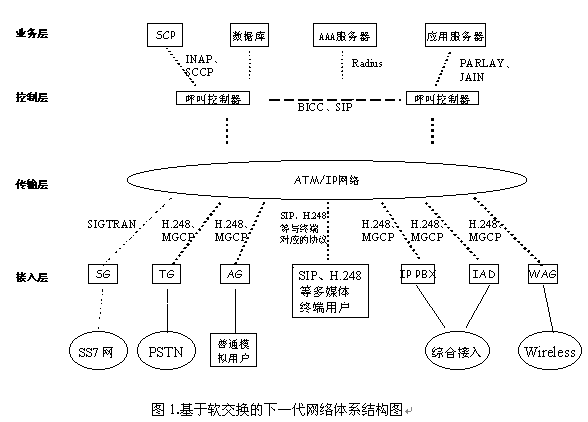 就目前業(yè)界對下一帶網(wǎng)絡的研究來看,下一代網(wǎng)絡是可以提供語音、數(shù)據(jù)和多媒體等各種業(yè)務的綜合開放的網(wǎng)絡構(gòu)架,它將網(wǎng)絡中的各種設(shè)備按照功能進行分層,以業(yè)務為驅(qū)動,為用戶提供各種手段的接入,所有的業(yè)務,包括實時的和非實時的,均由一個統(tǒng)一的寬帶分組網(wǎng)絡來承載。