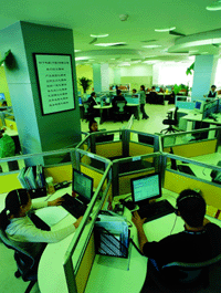 這個(gè)輕松的環(huán)境不是會(huì)客室,而是松下電器(中國(guó))有限公司提供客戶服務(wù)的800呼叫中心。