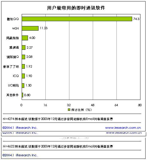 新迎來(lái)的2004年對(duì)于中國(guó)的互聯(lián)網(wǎng)是充滿無(wú)限憧憬的一年,互聯(lián)網(wǎng)用戶打到了近8000萬(wàn),在繼短信、網(wǎng)絡(luò)廣告、網(wǎng)絡(luò)游戲成為中國(guó)網(wǎng)絡(luò)企業(yè)發(fā)家致富的法寶之后,即時(shí)通訊又將是一塊無(wú)限誘惑的領(lǐng)地,成為門(mén)戶網(wǎng)站、電信運(yùn)營(yíng)商展開(kāi)廝殺的新大陸。