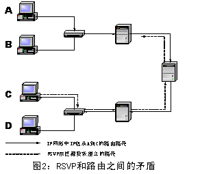 RSVP中引入每流狀態(tài)(per-flow state)的概念,對于數(shù)據(jù)通信和實時應(yīng)用通信而言,IP網(wǎng)絡(luò)同時扮演了面向無連接和面向連接網(wǎng)絡(luò)的兩個不同角色,提供兩種功能,這與其簡化設(shè)計原則相抵觸。