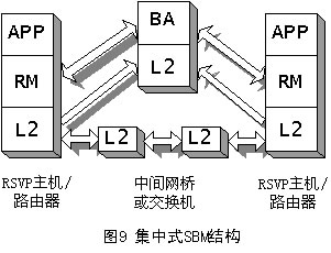 SBM有兩種形式的體系結(jié)構(gòu):集中式結(jié)構(gòu)和分布式結(jié)構(gòu),它取決于BA所處的位置,如圖9和圖10所示。不管在哪種形式的結(jié)構(gòu)中,RM都必須在需要請求資源的端系統(tǒng)中。APP表示需要使用RM的應(yīng)用,它可以是用戶應(yīng)用程序,也可以是高層協(xié)議(如RSVP)。