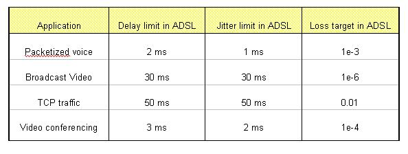 各種應用對QoS有不同的要求,各種應用對QoS的要求可用時延、抖動和丟包率三項指標作為量度,如表1: