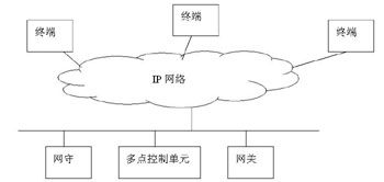 基于H.323的軟件視頻會(huì)議系統(tǒng)由相應(yīng)的協(xié)議族提供支持,使得這樣的系統(tǒng)能夠有很強(qiáng)的適應(yīng)性、兼容性。H.323建議的多媒體會(huì)議系統(tǒng)不是基于客戶(hù)服務(wù)器結(jié)構(gòu),而是基于傳統(tǒng)的電話(huà)呼叫網(wǎng)絡(luò)模式。H.323為基于網(wǎng)絡(luò)的通信協(xié)議定義了4個(gè)主要的組件:終端(Terminal)、網(wǎng)關(guān)(Gateway)、網(wǎng)守(Gatekeeper)和多點(diǎn)控制單元(MCU);就?fù)浣Y(jié)構(gòu)結(jié)構(gòu)如圖: