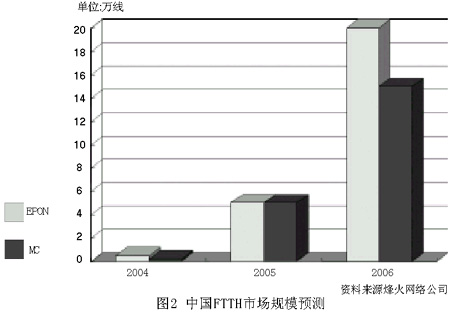 此外,IPTV、視頻點播等高帶寬業(yè)務的逐步發(fā)展,將會加快FTTH的建設步伐,而FTTH這種能夠提供高帶寬的接入方式反過來亦會為以上業(yè)務的開展提供高品質的服務支持,這是其他接入方式所無法比擬的。