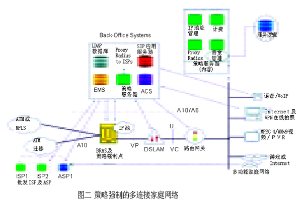 運營商基礎(chǔ)網(wǎng)絡(luò)形形色色的演化,歸根結(jié)底都圍繞著運營商最關(guān)心的利潤增長問題。隨著全球投入使用的DSL線路數(shù)目迅速接近1億,利用現(xiàn)有的DSL網(wǎng)絡(luò)提供更加豐富的高端服務(wù),成為業(yè)界共同矚目的焦點。采用QoS和可靠的端對端策略強制 (policy enforcement) 技術(shù)是目前許多應(yīng)用軟件的主要特征。如何把這些特性應(yīng)用到DSL網(wǎng)絡(luò)上呢?