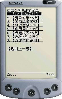 右圖為江蘇移動(dòng)鹽城分公司企業(yè)經(jīng)營(yíng)分析系統(tǒng)WAP手機(jī)應(yīng)用界面。