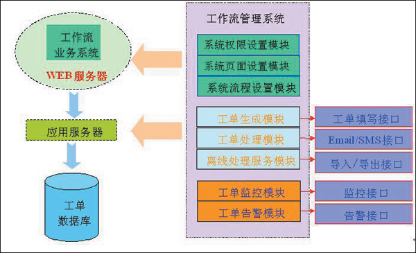 第三部分是工作流業(yè)務系統(tǒng),提供工作流系統(tǒng)的各項處理功能,包括復核、派單、處理、反饋、查詢等功能。該系統(tǒng)運行在Web服務器上,最終用戶只需要在瀏覽器上輸入該工作流業(yè)務系統(tǒng)的網址就可以使用該系統(tǒng)。