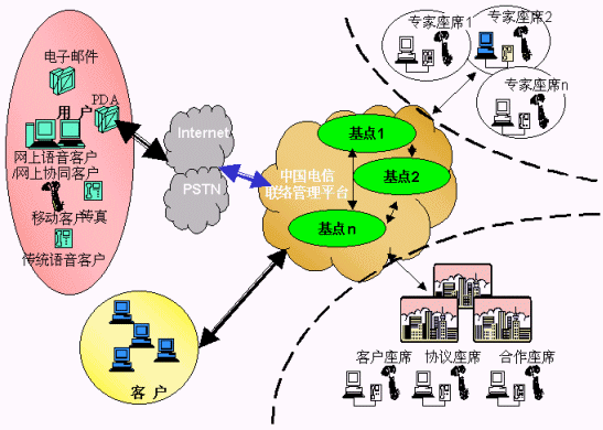 電信運(yùn)營商提供的用戶、客戶、電信公司的統(tǒng)一的聯(lián)系平臺,各類客戶通過使用聯(lián)系平臺,向其用戶提供方便的、不受時間、地域和媒體的限制的"3A"級聯(lián)絡(luò)服務(wù),用戶、客戶、電信平臺間的聯(lián)絡(luò)能得到有效路由、管理、品質(zhì)保障;聯(lián)絡(luò)中心通過將分布在各地、各種媒體、各種形式的資源整合在一起實(shí)現(xiàn)客戶服務(wù)增值,創(chuàng)造無限商機(jī),有效提升客戶聯(lián)絡(luò)中心的價值,使用戶得到最貼身的、個性化的、專業(yè)的服務(wù),為客戶提供成本更低、資源更豐富、服務(wù)更專業(yè)、具備強(qiáng)大商業(yè)智能的產(chǎn)品營銷及服務(wù)、電信運(yùn)營商則開發(fā)大量的增值服務(wù)、產(chǎn)生更多的利潤增長空間、更多忠實(shí)的客戶,實(shí)現(xiàn)三方面共同成功。