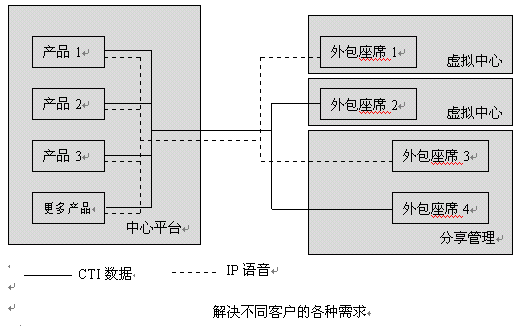 面向大客戶,為其提供業(yè)務(wù)開發(fā)、系統(tǒng)集成、硬件出租、場地出租、人員出租實(shí)現(xiàn)其客戶服務(wù)、客戶關(guān)懷、數(shù)據(jù)挖掘、電話銷售、商業(yè)智能等服務(wù)功能,大客戶通過呼叫中心外包,可以實(shí)現(xiàn)成本降低、風(fēng)險降低、建設(shè)周期縮短、并能實(shí)現(xiàn)服務(wù)增值,電信外包呼叫中心向企業(yè)提供贏得競爭的重要手段。