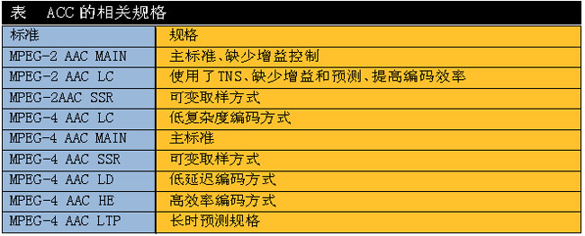 目前國際上對音頻處理技術(shù)上標(biāo)準(zhǔn)較多,在對下一代實(shí)時(shí)交互音頻處理上可以采用MPEG-1 Layer 2或AAC系列音頻,對選用標(biāo)準(zhǔn)的原則是,音頻頻響范圍要達(dá)到22kHz,這樣就幾乎可以覆蓋了人耳聽覺的全部范圍,甚至在高頻方面還有所超越,能夠使現(xiàn)場音頻得到真實(shí)自然的還原,并且在還原時(shí)可以采用雙聲道立體聲回放,使整個(gè)視頻通信的聲音有更強(qiáng)的臨近感,達(dá)到CD級音質(zhì)。同時(shí)在對鏈路帶寬的適應(yīng)和編解碼效率上達(dá)到最佳。附表列出了AAC的9種規(guī)格。