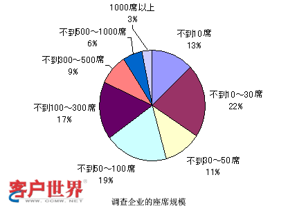 那么和剛才雜志社調(diào)查的結(jié)果是一樣的。這個數(shù)字又是政府方面調(diào)查的結(jié)果,他們調(diào)查的很細(xì),對很小規(guī)模的,比如說1-4人的呼叫中心都進(jìn)行了調(diào)查,并且看到這種小規(guī)模的呼叫中心還占有很大的比例?梢钥吹,10人以下的呼叫中心可能在這個結(jié)果里面占了基本上高于50%,所以可能得到一個結(jié)論,就是在日本小型的呼叫中心非常多。