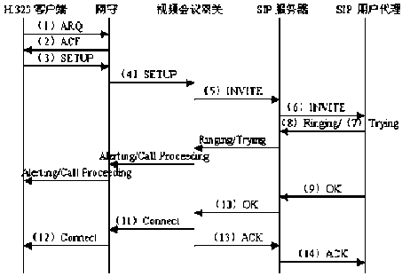 為了更好的說明視頻會(huì)議網(wǎng)關(guān)在跨協(xié)議會(huì)議系統(tǒng)中的作用和工作流程,我們以一個(gè)由H.323客戶終端發(fā)起的會(huì)議請(qǐng)求為例來描述視頻會(huì)議網(wǎng)關(guān)對(duì)兩種協(xié)議信令消息的處理過程(如圖2所示)。
