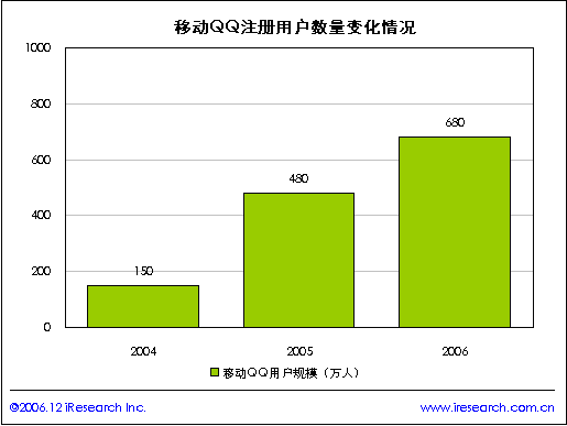 近兩年移動QQ的市場規(guī)模迅速擴大,iResearch研究結(jié)果顯示2006年移動QQ用戶規(guī)模達到680萬人,移動QQ所帶來的現(xiàn)金收入成為騰訊上市公司最重要的收入之一。移動IM與互聯(lián)網(wǎng)IM最大的不同在于產(chǎn)業(yè)鏈移動運營商的參與。艾瑞認為互聯(lián)互通是移動IM產(chǎn)業(yè)整合和發(fā)展必然趨勢。