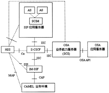 R5在業(yè)務方面除原有的CAMEL、OSA之外,新支持SIPAS。IMS的業(yè)務架構如圖2所示: