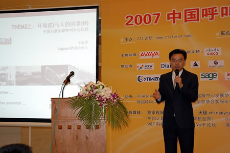 2007年4月18日至20日,2007中國呼叫中心及企業(yè)通信大會在上海光大會展中心國際大酒店隆重召開,以下是專題演講實錄:主持人(李京成):各位早上好,大會的第三天了,時間像飛一樣的快,今天很多朋友都帶著行李來的,結(jié)束就準備回家了。今天仍然有兩個分論壇在這個分論壇主題是呼叫中心在海外,另外一個分論壇在十號廳,都有非常優(yōu)秀的專家給大家提供精彩的演講。今天我們第一位給大家演講的大家并不陌生,我們的老朋友豐祖軍先生,有請豐祖軍先生。豐祖軍先生是在國內(nèi)是一個非常資深的呼叫中心運營管理專家,我們經(jīng)常在一起合作。在此他演講之前,要做好思想準備跟上他的跳躍思維,不然會落后,他的思維非?欤磉_也非?,他演講的題目是環(huán)境與人的因素-中國與新加坡呼叫中心的比較,下面把時間交給豐祖軍先生。