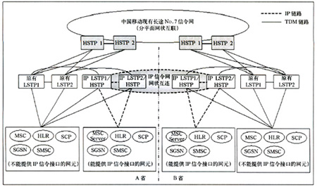 今后隨著支持IP信令的網(wǎng)元逐漸增多,省際信令將逐步改由IP LSTP/HSTP疏通,省內(nèi)信令逐步改為支持IP的網(wǎng)元間通過(guò)IP承載網(wǎng)直聯(lián),最終IP LSTP完全作為HSTP使用,達(dá)到IP信令網(wǎng)目標(biāo)網(wǎng)結(jié)構(gòu)。
