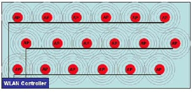 在傳統(tǒng)的WLAN中,每個接入點構(gòu)成一個單元,且為每個接入點分配一個信道。為了減小單元間的干擾,必須根據(jù)安裝部署前測得的詳盡的射頻站點電測方案,為業(yè)務(wù)區(qū)中的所有接入點分配信道。這種接入點部署方案需要大量的射頻經(jīng)驗和周密規(guī)劃,這通常是WLAN安裝過程中成本最高的一個方面。這種剛性的架構(gòu)還迫使語音和數(shù)據(jù)用戶競用相同的無線資源,因此即便是基于單元的網(wǎng)絡(luò)安裝好并運行后,信號傳輸問題依然會持續(xù)存在。隨著運營商機構(gòu)的增加或變化,在確定新的接入點部署方案時還需額外的射頻規(guī)劃成本。