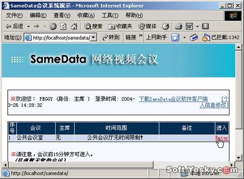 首先,與會(huì)會(huì)員需要打開“http://IP地址/samedata”并下載安裝登錄頁(yè)面中的“SamedataConference”,此軟件同樣具有傻瓜式的安裝向?qū)В恍枰宦穯螕簟跋乱徊健奔纯伞?br />