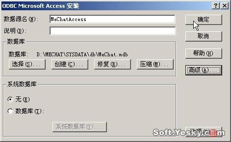 為使Mechat系統(tǒng)具有較高的運(yùn)行效率,我們將其添加數(shù)據(jù)庫(kù)支持,單擊“開始”/“設(shè)置”/“控制面板”,選擇“治理工具”/“數(shù)據(jù)源(ODBC)”,切換至“系統(tǒng)DSN”,單擊“添加”按鈕啟動(dòng)ODBC數(shù)據(jù)源添加向?qū)Вx擇“MicrosoftAccessDriver(*、mdb)”,然后在DSN屬性設(shè)置窗口設(shè)置數(shù)據(jù)源名稱為“MeChatAccess”,選擇數(shù)據(jù)庫(kù)文件為D:\MeChat\SysData\db目錄下的MeChat、mdb(如圖23)。設(shè)置完畢,單擊“確定”退出。