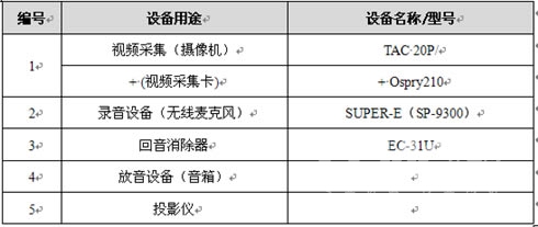設(shè)備要求:攝像機(jī)、投影儀、音箱(配"回音消除器")、麥克風(fēng)。