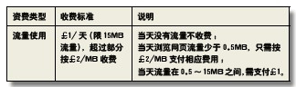 表2Vodafone英國數(shù)據(jù)流量按天計(jì)費(fèi)