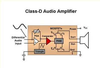 在音頻解決方案中進(jìn)行折衷與音頻處理性能、音頻輸出功率、熱耗散和整體的功耗有關(guān)。傳統(tǒng)的音頻方案由兩到三個(gè)受AB類音頻功率放大器驅(qū)動(dòng)的揚(yáng)聲器構(gòu)成。然而,相對于它的整個(gè)音頻輸出而言,AB類放大器的工作固有地生成大量的熱。這些積聚起來的高溫因?yàn)樾枰蟮纳崞瑏砩l(fā)熱量,所以,在大多數(shù)薄形狀因子的平面電視中禁止采用AB類放大器。為了解決這個(gè)問題,業(yè)界采用了D類放大器技術(shù)(圖3)。目前,輸出場效應(yīng)三極管(FET)可以在截止區(qū)與飽和區(qū)之間切換,從而提供比AB類放大器更高的效率。現(xiàn)有的音頻解決方案容許你完全利用數(shù)字信號路徑。這不僅僅最大化音頻效率,而且,它們也提供有效的處理和大于110dB的信噪比(SNR)。