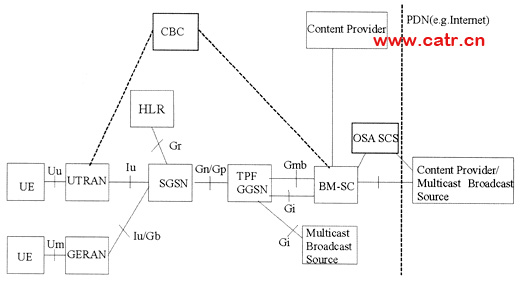 隨著移動用戶高速寬帶數(shù)據(jù)業(yè)務的應用,當大量用戶同時接收同樣的高速數(shù)據(jù)時,由于待發(fā)送內容是每個用戶都需要接收的數(shù)據(jù),如果信源與每個接收用戶建立鏈路,每條鏈路上又都重復發(fā)送相同數(shù)據(jù),這樣會造成資源使用的重復和浪費。因此,需要一種支持移動的廣播多播技術可以有效利用信源和無線網絡空口資源,以減少網絡中傳送的數(shù)據(jù)量,克服網絡擁塞。3GPP