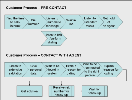 那么,從企業(yè)內(nèi)部的觀點出發(fā)看我圍繞這次簡單的預(yù)定流程所產(chǎn)生的總體客戶體驗如何呢?這需要好好評估,我一共只打了兩次電話并在24小時內(nèi)得到解決,而且我們之間的互動——很有可能——已經(jīng)被記錄在航空公司的CRM系統(tǒng)中。但是如果你問問作為客戶的我,我會給出一個完全不同的場景描述:首先,提供給我的可聯(lián)絡(luò)電話號碼實在太多了,其次,沒有說明這些電話號碼處理的“范圍”各是什么,再次代理質(zhì)量不合格,她完全不知道自己該干什么,還得求助于另外一個同事,最后,也是很重要的一點,最終提交的解決方法并不能讓人接受。這些信息——或者說的更準(zhǔn)確些,客戶的評價——出現(xiàn)在呼叫中心的報告里了嗎?出現(xiàn)在哪兒?沒有,這一方面是因為流程并不是以客戶為中心的觀點來定義的,另一方面因為我們是人,我們努力的在工作,不希望自己變成透明人。