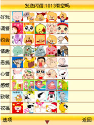 更新完成后再次選擇“發(fā)送閃信”原來空空的屏幕變得熱鬧起來。每個分類里面都充滿了各種或可愛、或搞笑、或生動的形象。選擇一個動畫從屏幕左下的“選項”內(nèi)選擇“發(fā)送”進入發(fā)送的操作界面,所選的動畫在屏幕中間顯著位置不斷的循環(huán)播放,動畫的內(nèi)容一目了然。選擇發(fā)送進入收信人信息輸入屏幕,在收信人位置輸入對方的手機號碼,在附言位置輸入文字然后發(fā)送,等待片刻后一條閃信就發(fā)送成功了。所有的發(fā)送和接收到閃信記錄都可以在“收發(fā)記錄”內(nèi)方便的查找、管理或者直接回復轉(zhuǎn)發(fā)。