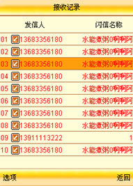 收發(fā)記錄里面詳細的記錄了所發(fā)生和接收的閃信的。選中一條信息,按中建就可以方便的查看這天信息的內(nèi)容(動畫、文字信息、時間一目了然)。選擇左軟鍵里面的選項可以快捷方便的進行“回復、轉(zhuǎn)發(fā)、刪除”等操作。