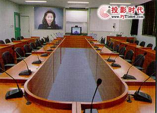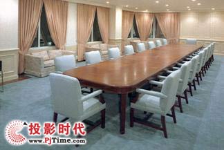 該會(huì)議室采用淺灰色色調(diào),與普通會(huì)議室沒(méi)有太大差別,采用頂部吊掛的投影機(jī)作為視頻的輸出設(shè)備,節(jié)省了會(huì)議室的空間,系統(tǒng)設(shè)備配置略復(fù)雜,具體如下:
