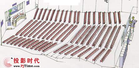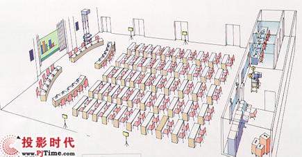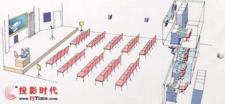 實(shí)例三:采用吊掛的投影機(jī)、電動(dòng)投影幕布、功放音響系統(tǒng)