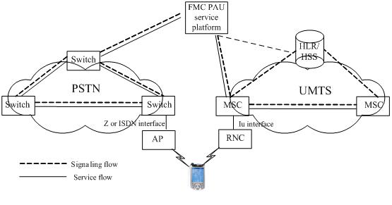 在FMC-PAU中,移動終端屬于雙;蚨嗄=K端,用戶使用該終端既可以接入到3G移動網(wǎng),也可以采用無線方式通過接入節(jié)點(AP)接入到PSTN網(wǎng)絡(luò)中。