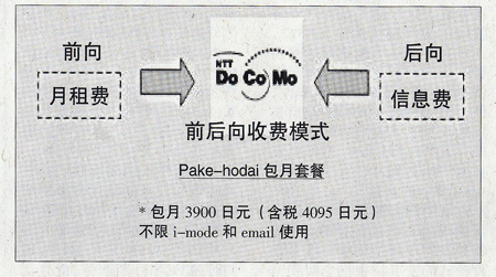 當(dāng)然,移動(dòng)互聯(lián)網(wǎng)運(yùn)營(yíng)不僅可以前向向用戶(hù)收費(fèi),還可以采取后向的廣告收費(fèi)模式,如圖NTT DoCoMo的數(shù)據(jù)業(yè)務(wù)資費(fèi)模式: