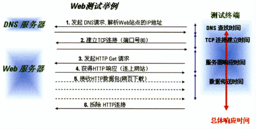 在用戶對(duì)無(wú)線數(shù)據(jù)業(yè)務(wù)的訪問(wèn)過(guò)程中,通常會(huì)包含多個(gè)階段(業(yè)務(wù)處理過(guò)程)。如當(dāng)用戶在使用手機(jī)要瀏覽網(wǎng)頁(yè)的時(shí)候,先輸入網(wǎng)頁(yè)的地址,然后按手機(jī)上的“訪問(wèn)”按鈕,一段時(shí)間后手機(jī)的屏幕上就會(huì)顯示出要瀏覽的網(wǎng)頁(yè)頁(yè)面。看似簡(jiǎn)單的過(guò)程,其實(shí)這里面包含了以下幾個(gè)步驟:DNS查找時(shí)間、TCP連接時(shí)間、服務(wù)器響應(yīng)時(shí)間和數(shù)據(jù)下載時(shí)間。在這中間,只要任何一步出了問(wèn)題,如DNS解析時(shí)間過(guò)長(zhǎng)、TCP連接建立時(shí)間過(guò)長(zhǎng)、應(yīng)用服務(wù)器負(fù)載過(guò)重、網(wǎng)絡(luò)可用信道資源少而造成數(shù)據(jù)下載慢,都可能會(huì)造成頁(yè)面下載失敗。因此,為了能準(zhǔn)確地定位造成用戶對(duì)Web服務(wù)質(zhì)量感知度差的原因,我們就需要得到各階段的性能參數(shù),這樣才能快速地進(jìn)行相關(guān)服務(wù)器和網(wǎng)絡(luò)的故障查找并解決問(wèn)題。