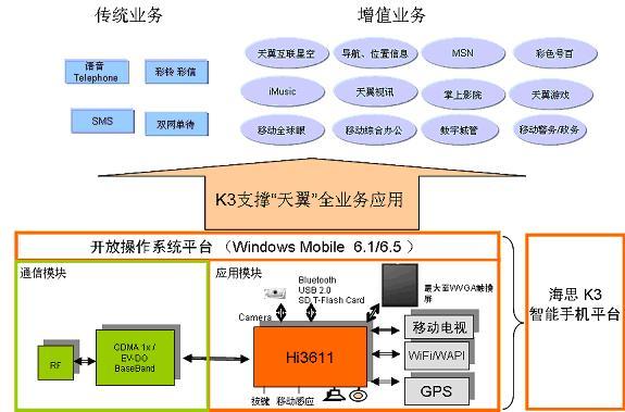 K3方案中集成了GPS、WAPI/WiFi、CMMB(帶CA)的等各種主流應(yīng)用,手機(jī)廠商在選擇時(shí)可以快速的剪裁、組合,形成不同配置的天翼手機(jī)系列,來(lái)滿(mǎn)足不同消費(fèi)群體的需求。