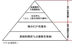 擁有4億多注冊用戶的騰訊,占有中國即時通信80%的市場份額,互聯網行業(yè)贏家通吃的定律顯露無疑,騰訊在海量用戶群基礎上開發(fā)的各種業(yè)務都在行業(yè)排名前列。當電視服務的規(guī)模用戶群得以穩(wěn)固,基于用戶規(guī)模之上的多元化服務集成成為可能,對電視服務形成高度依賴的用戶群具備了價值挖掘的條件。人人交互、人機交互依托基礎的電視分眾門戶化應用,形成了最初的用戶使用習慣;依托電視分眾門戶化集成的積累,建立用戶識別、用戶分析、收視分析、用戶數據交換的技術體系,用以支撐未來多元化娛樂與服務的開發(fā);贗PTV的交互能力,依托電視終端的易用性與舒適性,用戶價值、終端價值被充分挖掘,電視服務開始對其他媒介形式(含互聯網)的用戶形成吸納。圍繞交互、商務需求的電子貨幣體系逐漸完善,電視進入可有效運營、可便捷支付的良性的產業(yè)循環(huán),IPTV多元化業(yè)務之門打開。