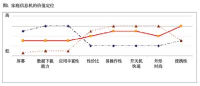 與計算機和手機對比,上網(wǎng)本和家庭信息機具有獨特的價值定位。通過藍海戰(zhàn)略分析圖,可以發(fā)現(xiàn)融合終端可能存在的市場空間。