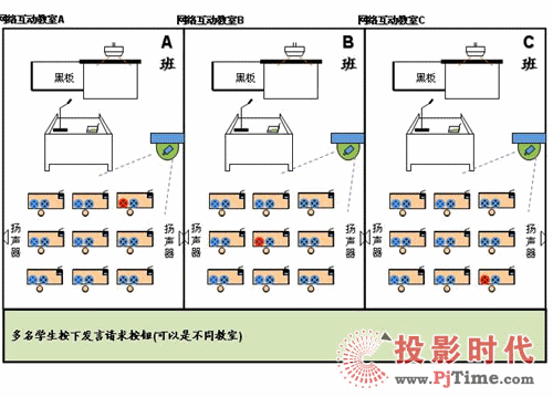 1)多名學(xué)生按下發(fā)言請求按鈕(可以是不同教室)