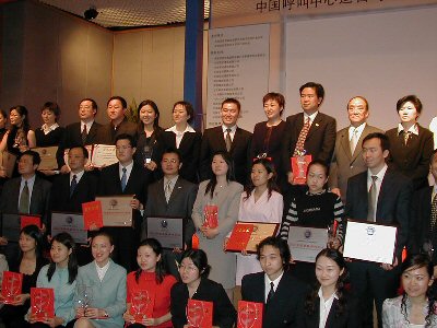 同時(shí),電話營銷部總經(jīng)理(原客戶信息支持部總經(jīng)理)張坤生榮獲"2004中國呼叫中心產(chǎn)業(yè)杰出貢獻(xiàn)獎(jiǎng)",客戶信息支持部業(yè)務(wù)總監(jiān)史紅新榮獲"2004中國呼叫中心最佳管理人獎(jiǎng)",客戶信息支持部咨詢員劉佳榮獲"2004年中國呼叫中心最佳客戶服務(wù)代表?quot;。
