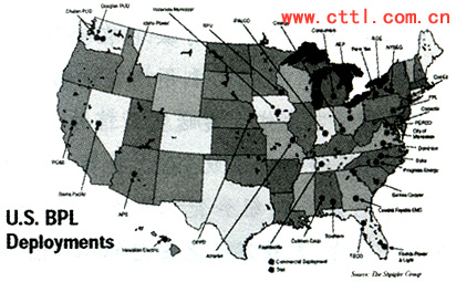 圖1 美國電力公司在全國各地開展的BPL試驗