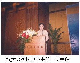 一汽大眾客服中心主任趙荊璞由于其在客戶服務(wù)方面的杰出貢獻被評為"2005中國最佳呼叫中心管理人",并作為獲獎代表在大會上發(fā)了言。?