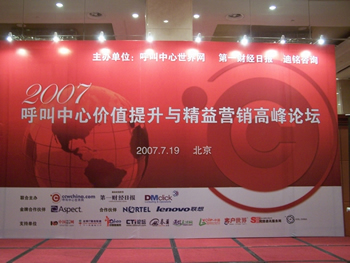由呼叫中心世界網(wǎng)、第一財經(jīng)日報、迪銘咨詢共同主辦的2007呼叫中心價值提升與精益營銷高峰論壇2007年7月19日在北京隆重召開。本次論壇也得到了科勝通(Aspect)、北電網(wǎng)絡(luò)、遨游旅游網(wǎng)、聯(lián)想等企業(yè)的全面支持。吸引了400多名來自全國各地的呼叫中心行業(yè)管理精英和從業(yè)人員參會。