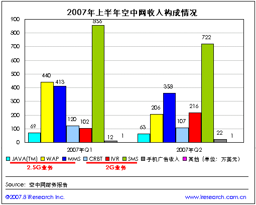 對(duì)此,艾瑞認(rèn)為,空中網(wǎng)Q2業(yè)績(jī)下滑主要原因是由于中國(guó)移動(dòng)2007年5月開始實(shí)施一系列新政策,包括當(dāng)手機(jī)用戶下載WAP產(chǎn)品時(shí)顯示GPRS服務(wù)費(fèi)用提醒,以及將空中網(wǎng)和其它第三方WAP服務(wù)提供商從中國(guó)移動(dòng)定制手機(jī)內(nèi)置菜單中刪除。