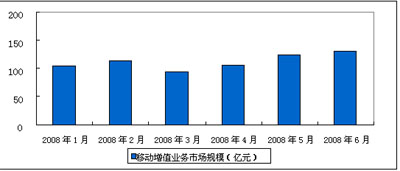 圖1 2008年1-6月中國移動(dòng)通信增值業(yè)務(wù)市場規(guī)模