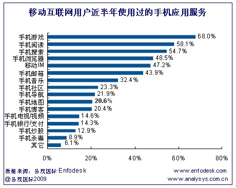 2009年手機游戲、手機閱讀成為用戶最受歡迎的手機應用服務