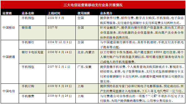 (三大電信運(yùn)營商移動支付業(yè)務(wù)開展情況)